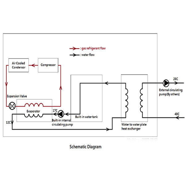 Σε σύγκριση με τον παραδοσιακό ψυγείο που ψύχεται με νερό, η διαφορά μεταξύ του ψυγείου που ψύχεται με αέρα και του παραδοσιακού ψυγείου που ψύχεται με νερό είναι ότι χρησιμοποιεί ψυγείο αέρα ως συμπυκνωτή,και ο ανεμιστήρας φυσάει τον αέρα που απαιτείται για τη διάχυση της θερμότητας από τη μία πλευρά της μηχανής και τον εξάγει από την άλλη πλευράΩς εκ τούτου, ο ψυκτικός μηχανισμός που ψύχεται με αέρα δεν χρειάζεται εξωτερική πηγή νερού ψύξης, είναι ανεξάρτητος και είναι πολύ βολικός για εγκατάσταση και μετακίνηση.